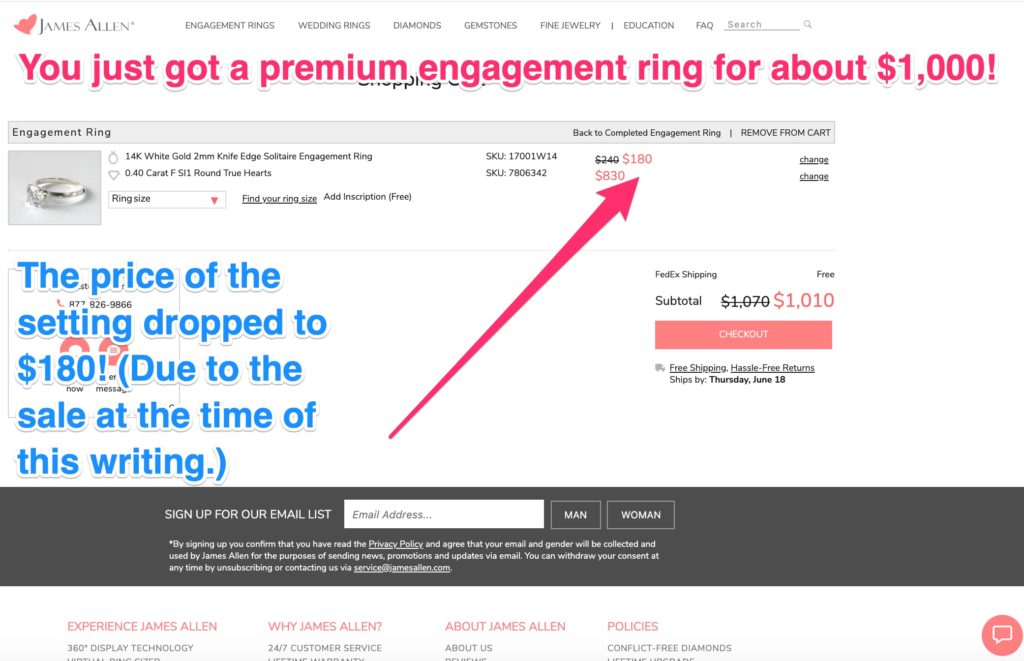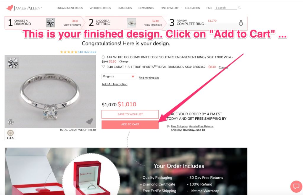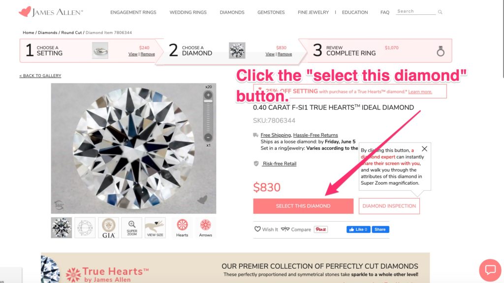 How to Get Your James Allen True Hearts Premium Diamond Ring for only (about) $1,000 right now: Step by Step Directions