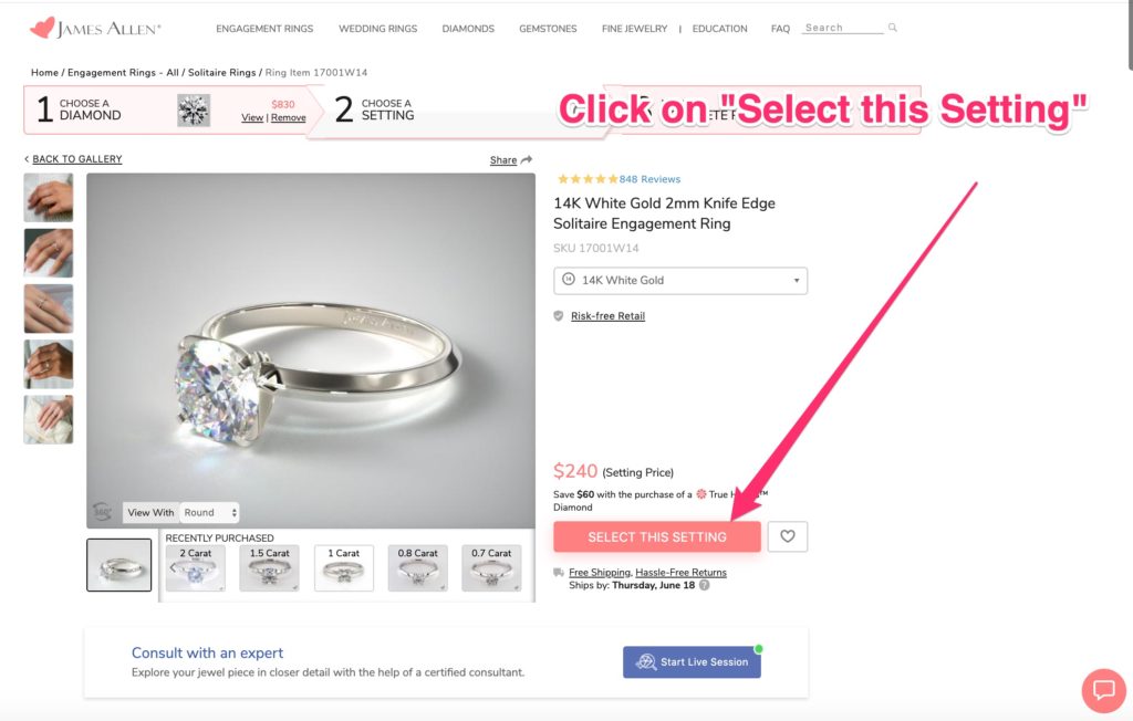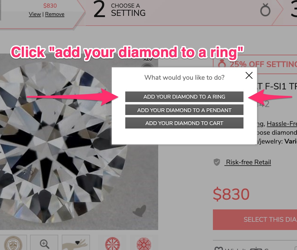 4. Click “add your diamond to a ring” …