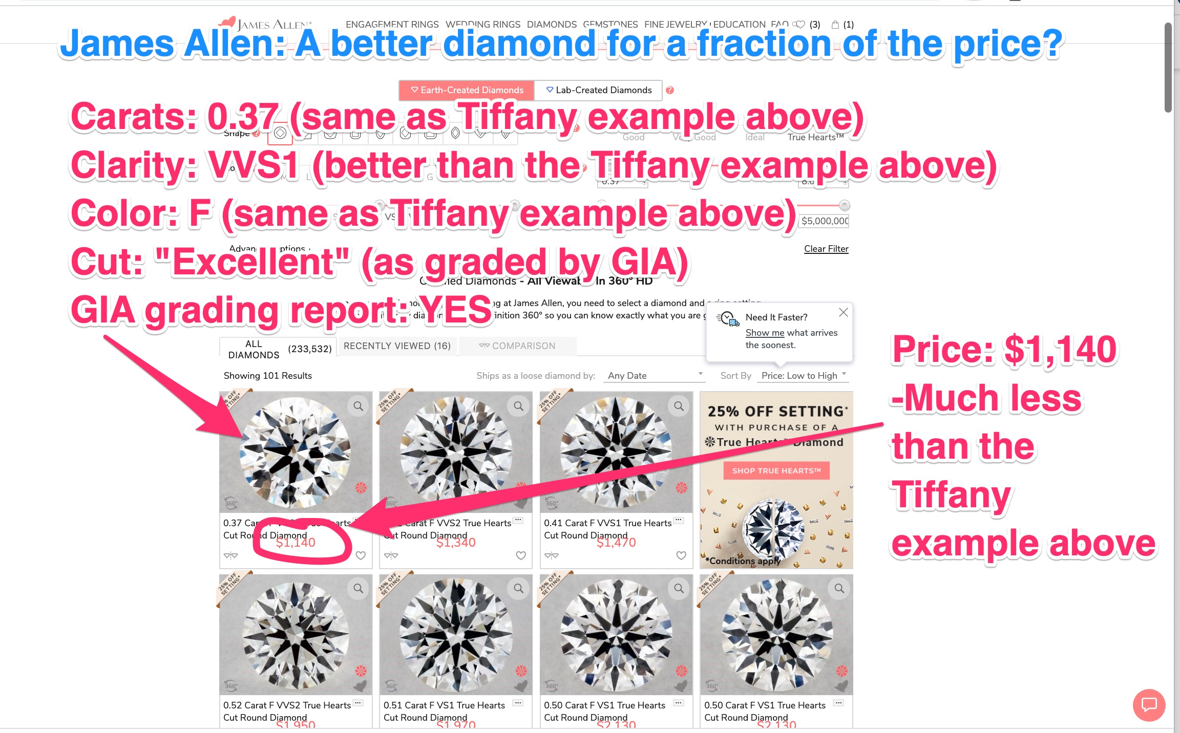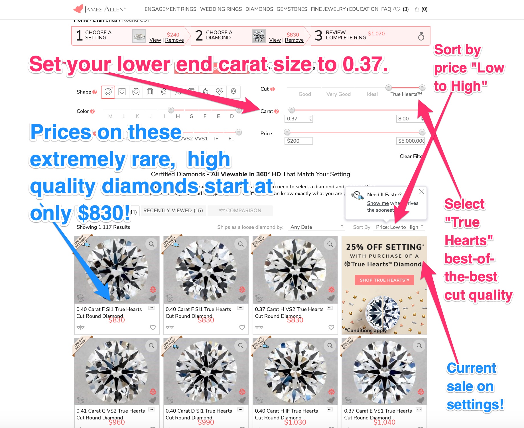 How to Get Your James Allen True Hearts Premium Diamond Ring for only (about) $1,000 right now: Step by Step Directions