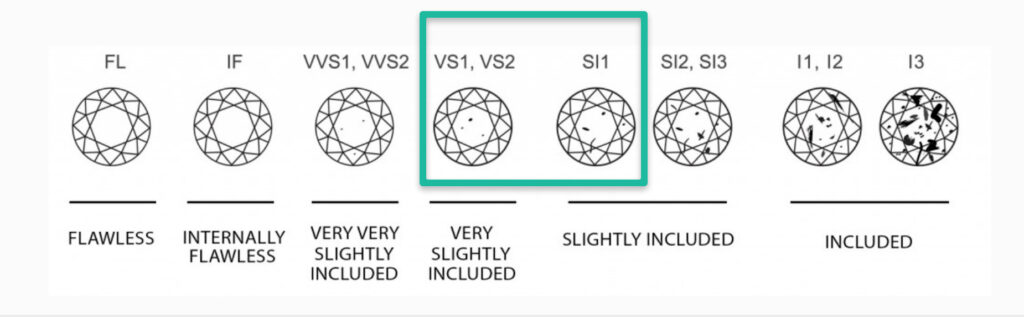 The SETTING is better in accent diamonds’ CLARITY (VS2 to SI1):