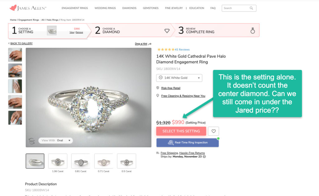 Second, let’s find a better diamond… for less money! And finish making the ring
