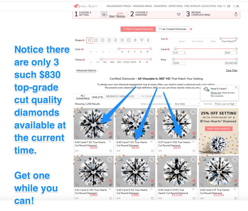 THAT’S how you find this incredible deal … a James Allen True Hearts diamond, with that beautiful setting, for $1,010!