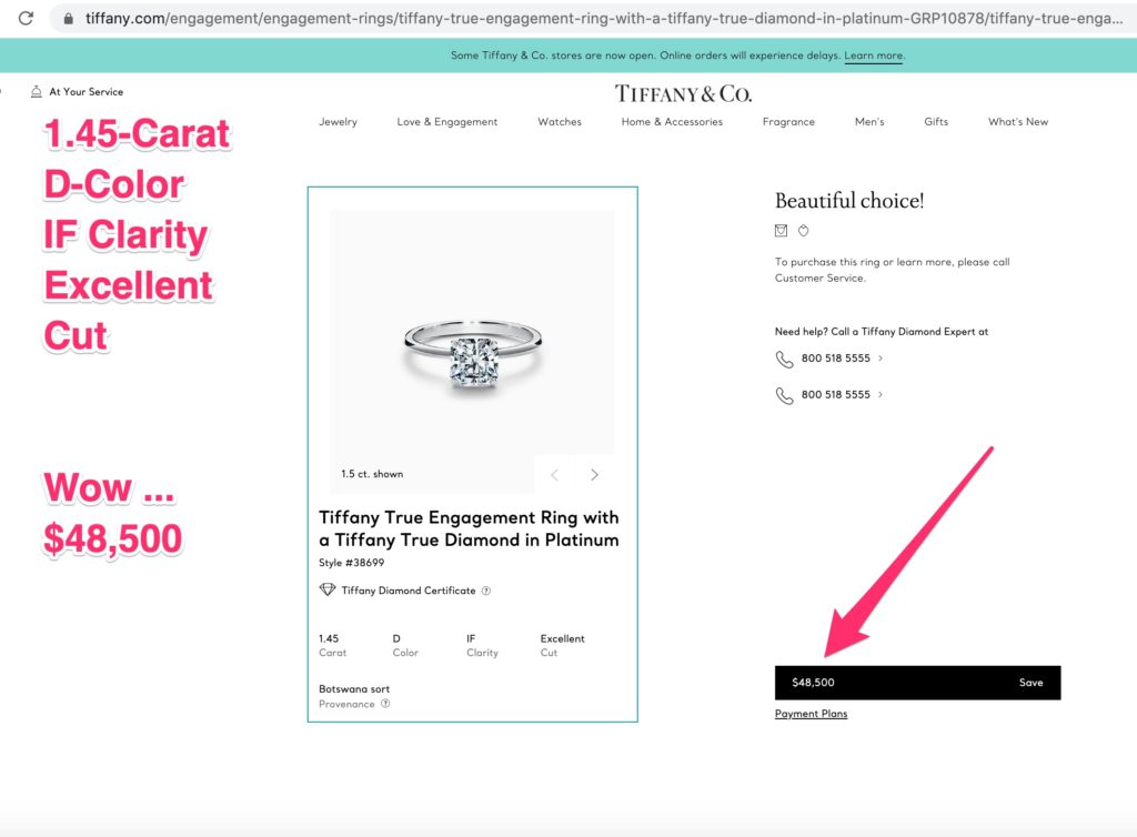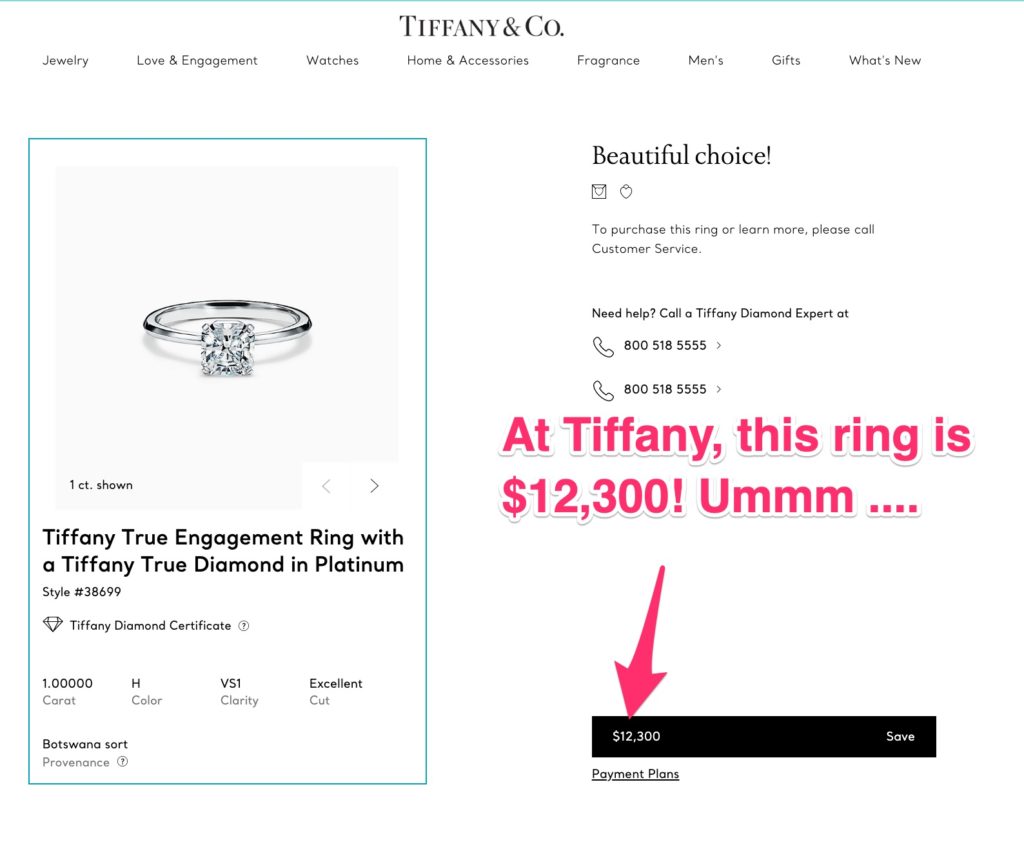 You tell me. I don’t know. I personally have an opinion however. My opinion is that Tiffany can charge a premium for its brand name. For me? That’s not worth the extra cost. If the extra cost is $2,000 or more, then write that in red letters: it’s not worth the extra cost.
