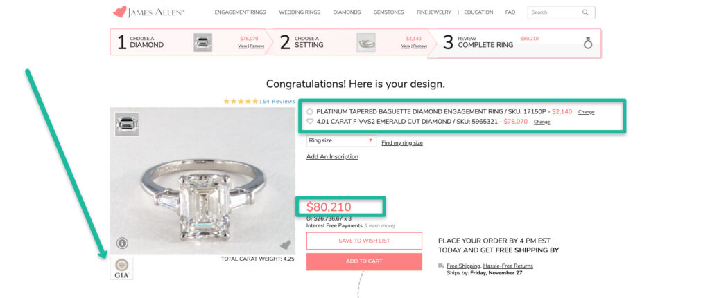 Let’s find out what James Allen may charge for a very similar diamond ring.