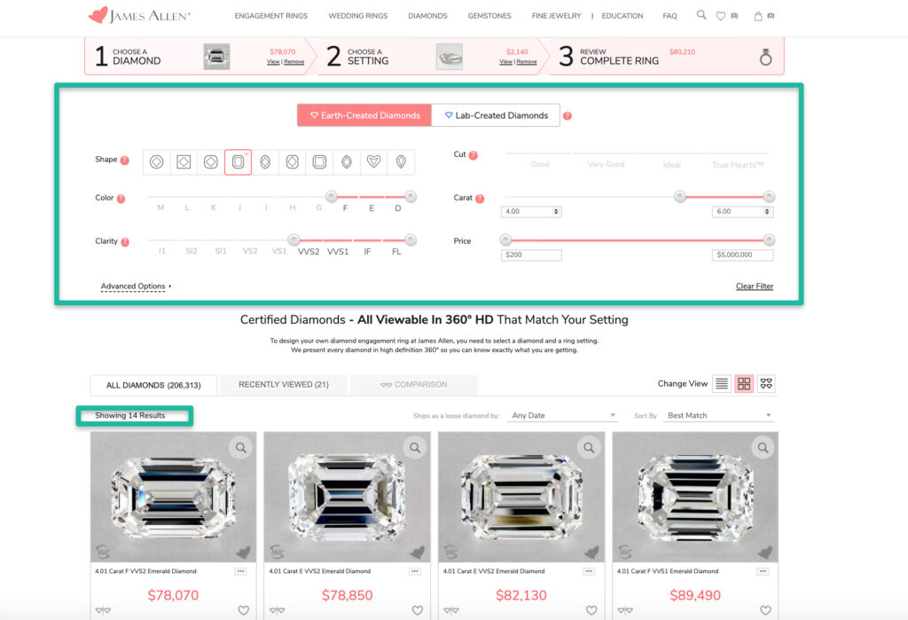 It’s by choosing a Lab-Created diamond at James Allen. As you know if you’ve read my diamond shopping analyses here, lab created diamonds are 100% the same as earth created diamonds. They were just created in a lab, not mined out of the earth.