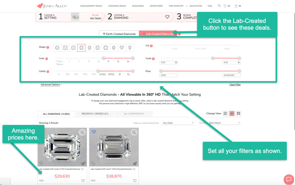 Here’s how to get that deal at James Allen, beating Costco’s deal, in two steps